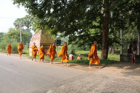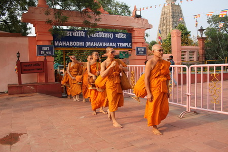 พระนวกะ ที่จำพรรษาที่วัดไทยพุทธคยา จำนวน ๑๑ รูป พร้อมพระภิกษุ อีก ๕ รูป ออกเดินทางด้วยเท้าเปล่า จากวัดไทยพุทคยา ผ่านพระมหาเจดีย์พุทธคยา ตั้งจิตอธิษฐาน ๓รอบแล้วนมัสการพระ พุทธเมตตา สวดอิติปิโส ๓จบ จึงออกเดินเท้าเปล่า ไปตามเส้นทางสาย คยา-คยาศรีษะ เป็นระยะทาง ๑๗ กิโลเมตร ถึงคยาศรีษะ(เขาหัวช้าง) พระภิกษุได้ขึ้นบนเขาคยาศรีษะ มีบันได ๔๕๐ ขั้น แล้วฉันท์เพลบนไหล่เขาคยาศรีษะ (และสวดมนต์ พิจารณาอาหาร ) สมควรแก่เวลาจึงเดินขึ้นบนยอดเขา(ซึ่งมีโบสถ์ฮินดู) ประกอบศาสนกิจ สวดบทอาทิตตะปริยายะสูตร ที่นี่ เมื่อครั้งองค์สมเด็จพระสัมมาสัมพุทธเจ้า แสดงธรรมโปรดชฎิลสามพี้น้อง เป็นกุศล ที่นี่.....สมควรแก่เวลาจึงเดินทางกลับเมื่อเวลา ๑๔.๐๐ น ซึ่งต้องมาทำการรับฟังการสวดปาฎิโมกข์ที่พระอุโบสถ วัดไทยพุทธคยาต่อไป ในเวลา ๑๕.๓๐ น..... ขอความเจริญในธรรมและกุศลธรรมดังกล่าวจงบังเกิดแด่สาูธุชนผู้เจริญสืบไป... |