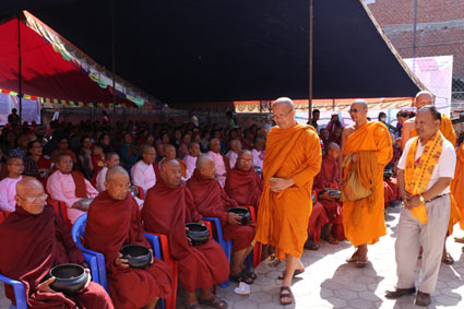 พระเทพโพธิวิเทศ(วีรยุทฺโธ) หัวหน้าพระธรรมทูตไทยสาย ประเทศอินเดีย-เนปาล พร้อมคณะพระสังฆ์ไทย และพระครูโสภธรรมบาล เจ้าอาวาสวัดศรีศากยสิงหวิหาร ปาตัน เยี่ยมและให้กำลังใจประชาชนชาวเนปาลที่พุทธสมาคมชาวเนปาลจากเหตุการณ์